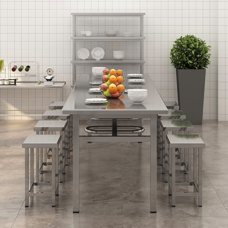 匯云星餐桌單位員工食堂桌椅不銹鋼餐桌學(xué)生員工廠(chǎng)飯?zhí)眠B體快餐桌椅組合 2m長(zhǎng)一桌八椅