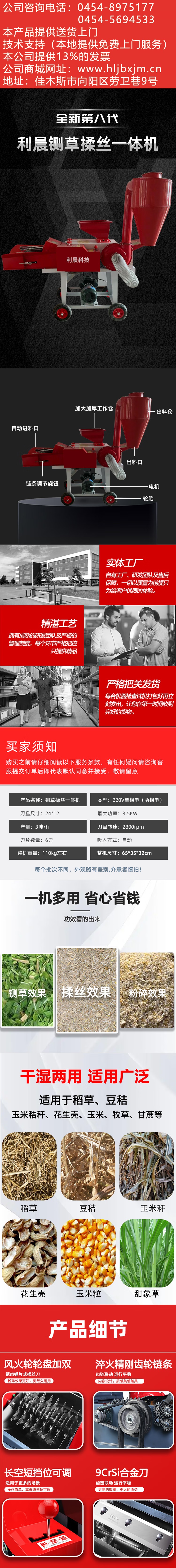 利晨鍘草揉絲粉碎一體機家用養(yǎng)殖牛羊打草飼料豬草切碎切草碎草揉草機 鍘草揉絲粉碎一體機 自營