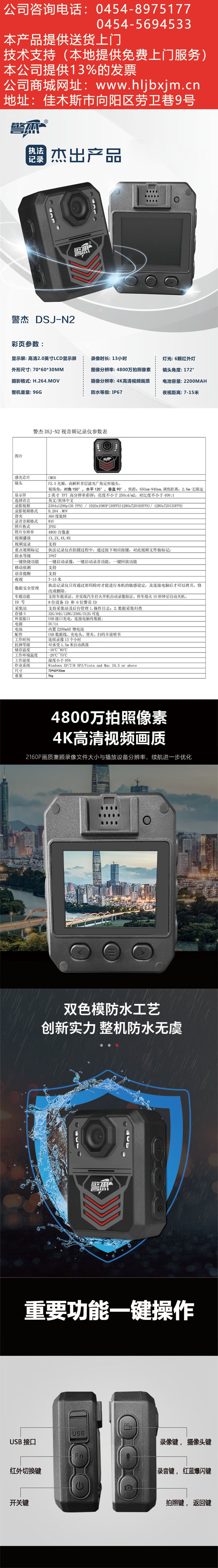 警杰DSJ-N2執(zhí)法記錄儀4800萬像素紅藍(lán)爆閃2200mAh毫安視音頻記錄 續(xù)航13H 512GB存儲(chǔ)卡 自營