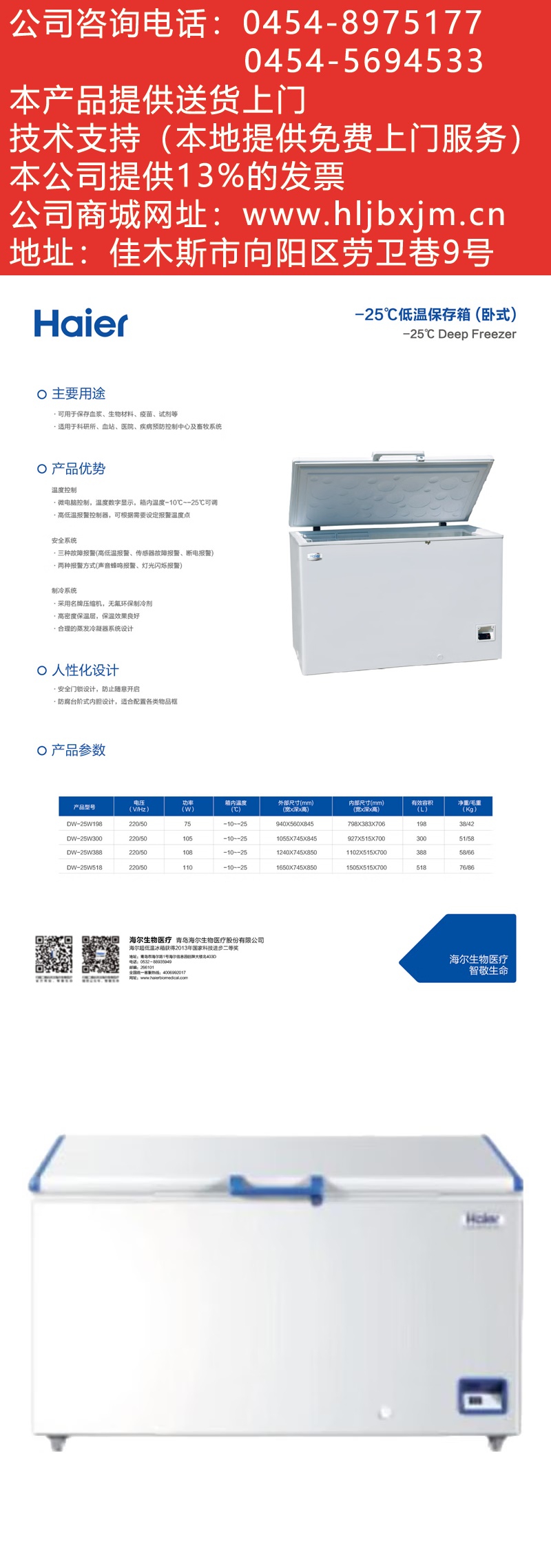 海爾生物醫(yī)療haier實驗室醫(yī)用低溫保存箱零下2025 30 40 60度負 -30度冷凍冰箱 DW-25W518(-25度) 自營