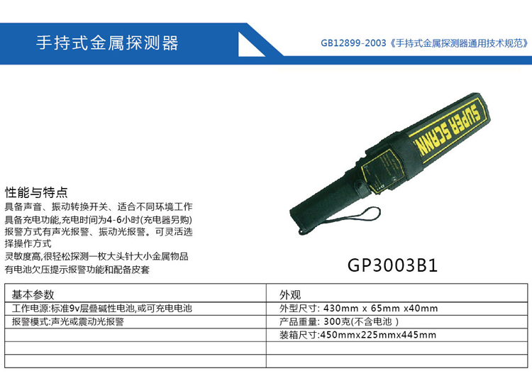 中科聯(lián)(DETECTOR ZK)手持式金屬探測器安檢儀工廠車站金屬探測儀檢測棒掃描儀充電套裝定制 ZK-GP3003B1 自營