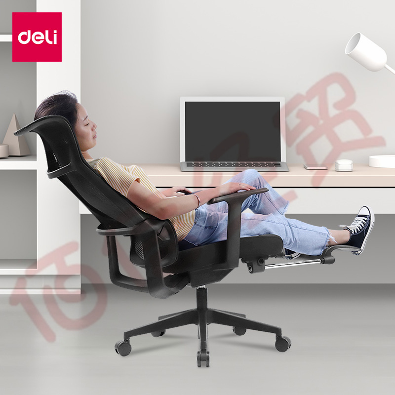 ¥2036.00■得力 deli 大角度可躺帶腳托午休電腦椅 人體工學(xué)椅 舒適辦公椅 91018 經(jīng)典黑