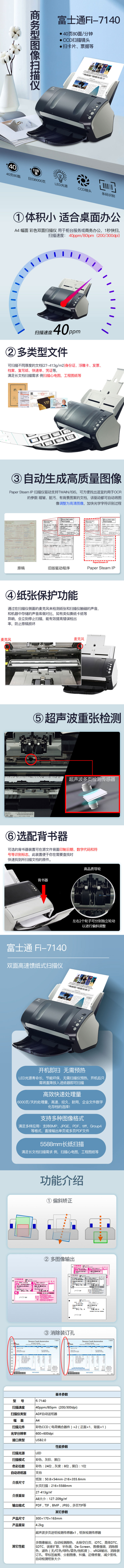富士通(Fujitsu)Fi-7140高速雙面掃描儀 彩色檔案發(fā)票連續(xù)掃描PDF 自營