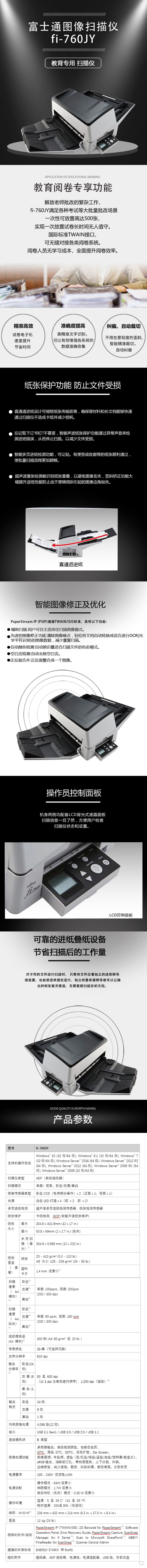 富士通(fujitsu)fi-760JY 教育專用饋紙式A3高速雙面掃描儀 試卷文件檔案高清掃描 自營(yíng)