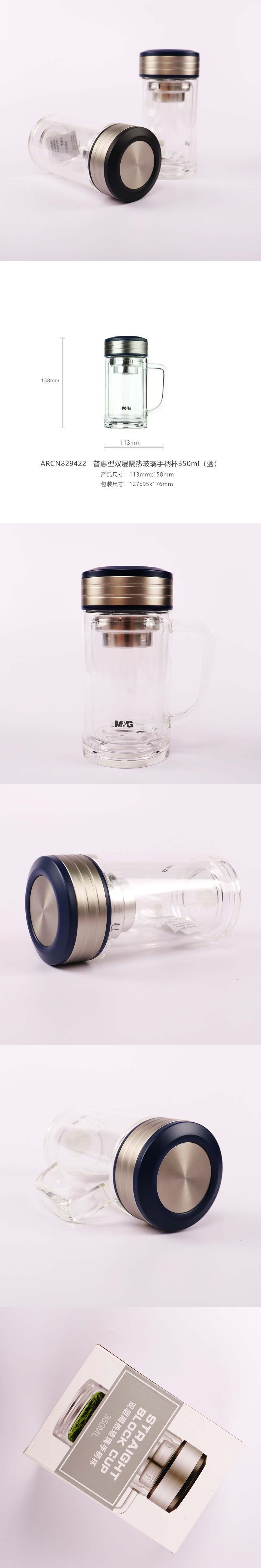晨光普惠雙層隔熱手柄杯350ml黑ARCN8294 自營(yíng)