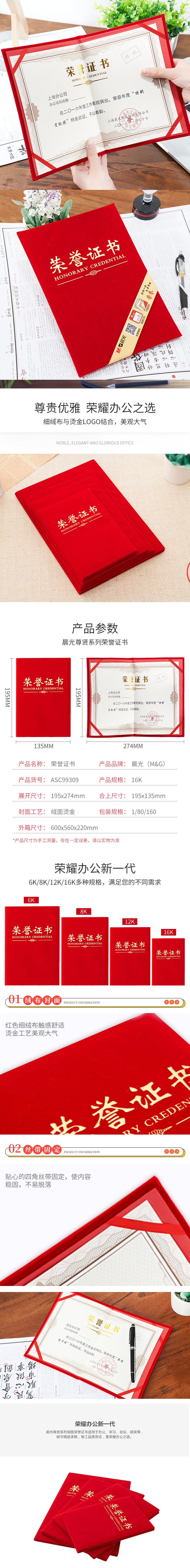 晨光尊賢絨面榮譽證書16K ASC99309 自營