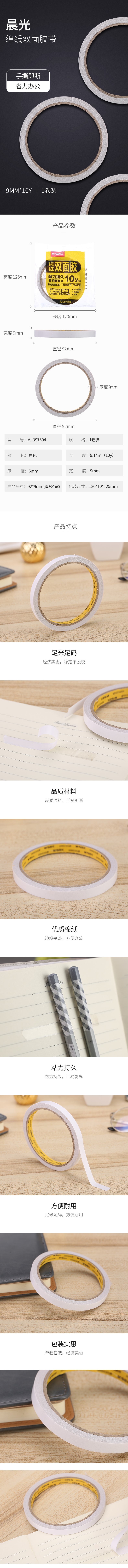 晨光雙面棉紙膠帶9mm*10y(單卷)AJD97394 自營(yíng)