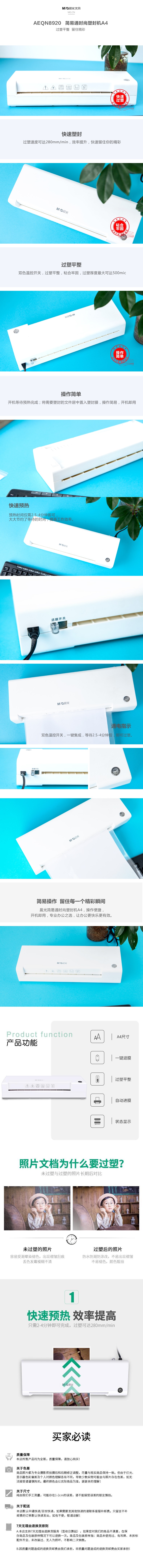 晨光簡(jiǎn)易通時(shí)尚A4塑封機(jī)AEQN8920 自營(yíng)