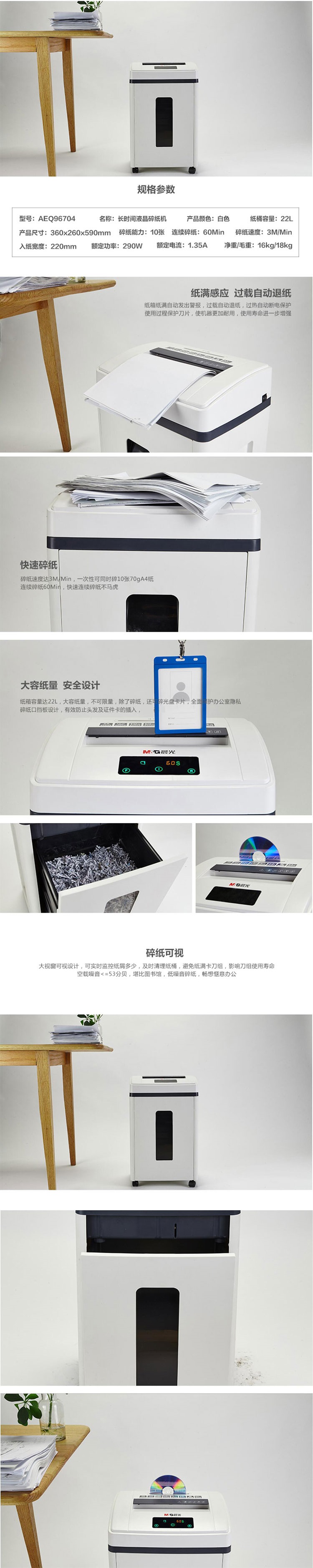 晨光碎紙機長時間液晶AEQ96704 自營