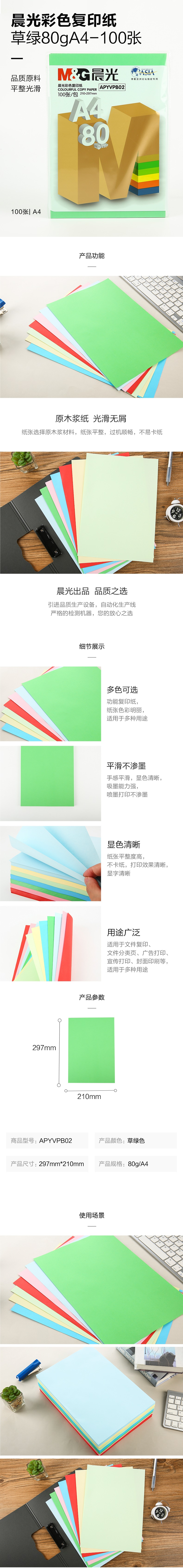 晨光彩色復(fù)印紙草綠80gA4-100張APYVPB0276 自營