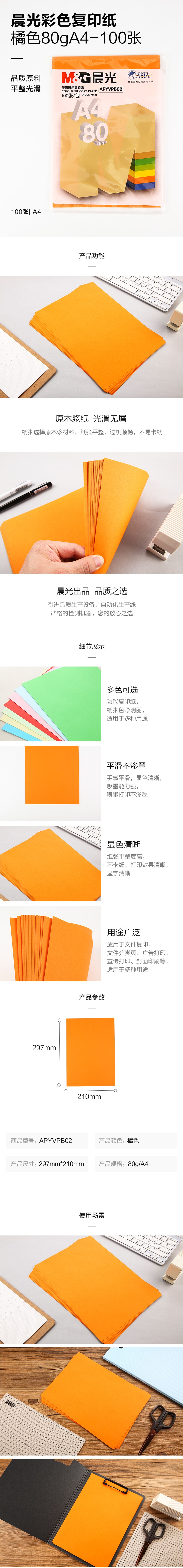 晨光彩色復印紙橘黃80gA4-100張APYVPB0250 自營