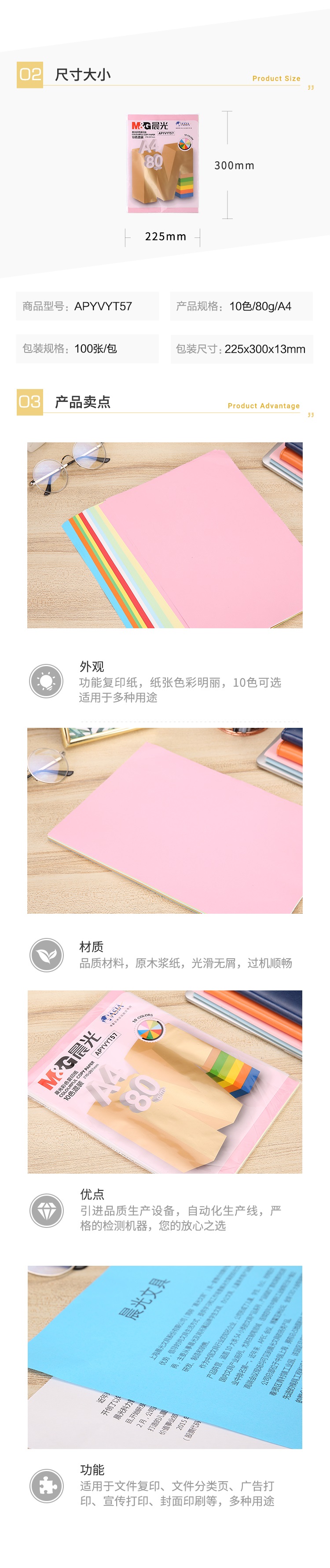 晨光彩色復印紙80克(10色混裝)APYVYT57 自營