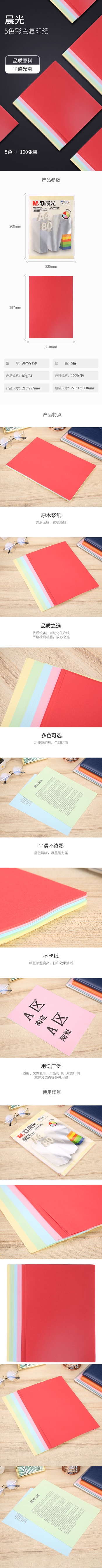 晨光彩色復(fù)印紙80克(5色混裝)APYVYT58 自營