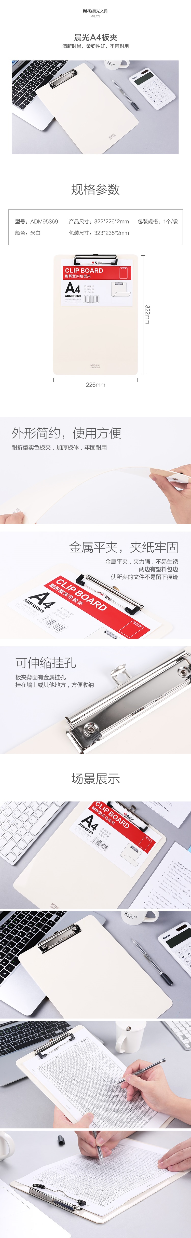 晨光耐折型實(shí)色書寫板夾A4(粉白)ADM95369N1 自營(yíng)