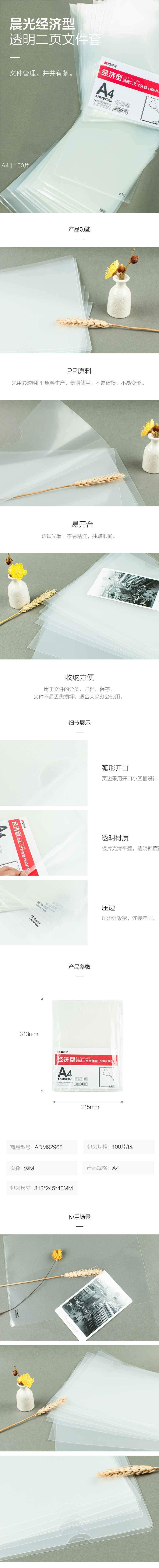 晨光經(jīng)濟(jì)型透明二頁(yè)文件套A4-ADM92968(100片/包) 自營(yíng)