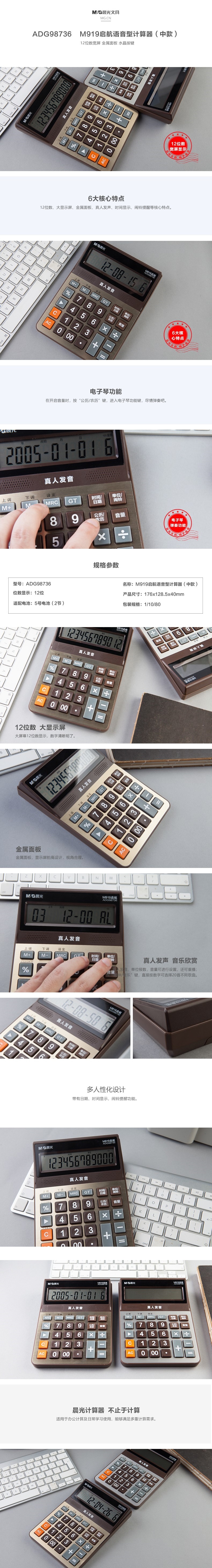 晨光M919啟航語(yǔ)音型計(jì)算器中款金ADG98736 自營(yíng)