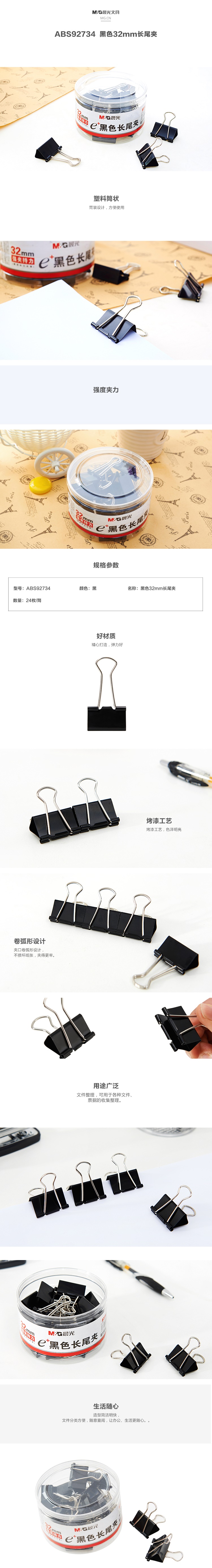 晨光Eplus黑色長(zhǎng)尾夾32mm(筒裝)ABS92734 自營(yíng)