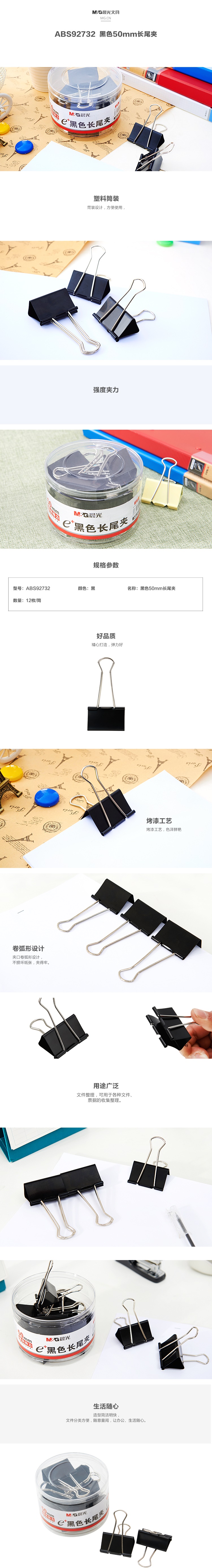 晨光Eplus黑色長尾夾50mm(筒裝)ABS92732 自營