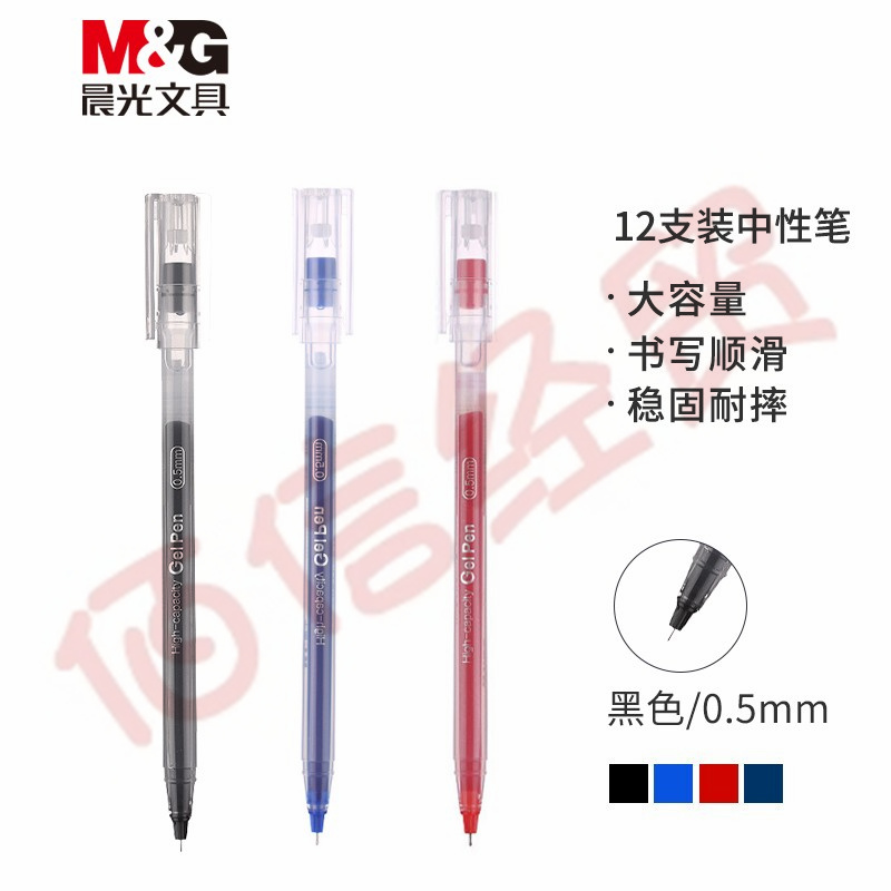 得力(deli)0.5mm黑色中性筆金屬噴漆筆 子彈頭簽字筆 12支/盒