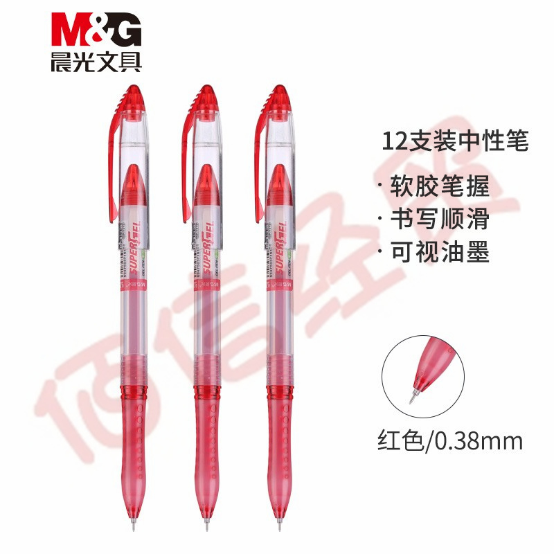 ■晨光GP1212中性筆0.38mm 紅色 12支裝/盒 自營