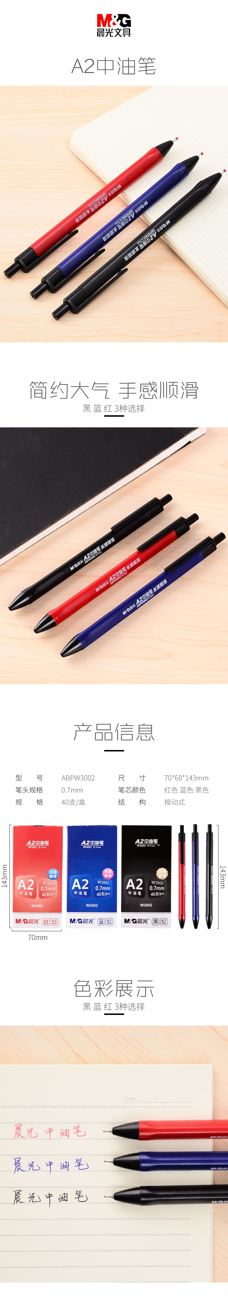 ■晨光A2中油筆水感順滑黑藍色油筆粗頭0.7 藍色40支 中油筆 自營