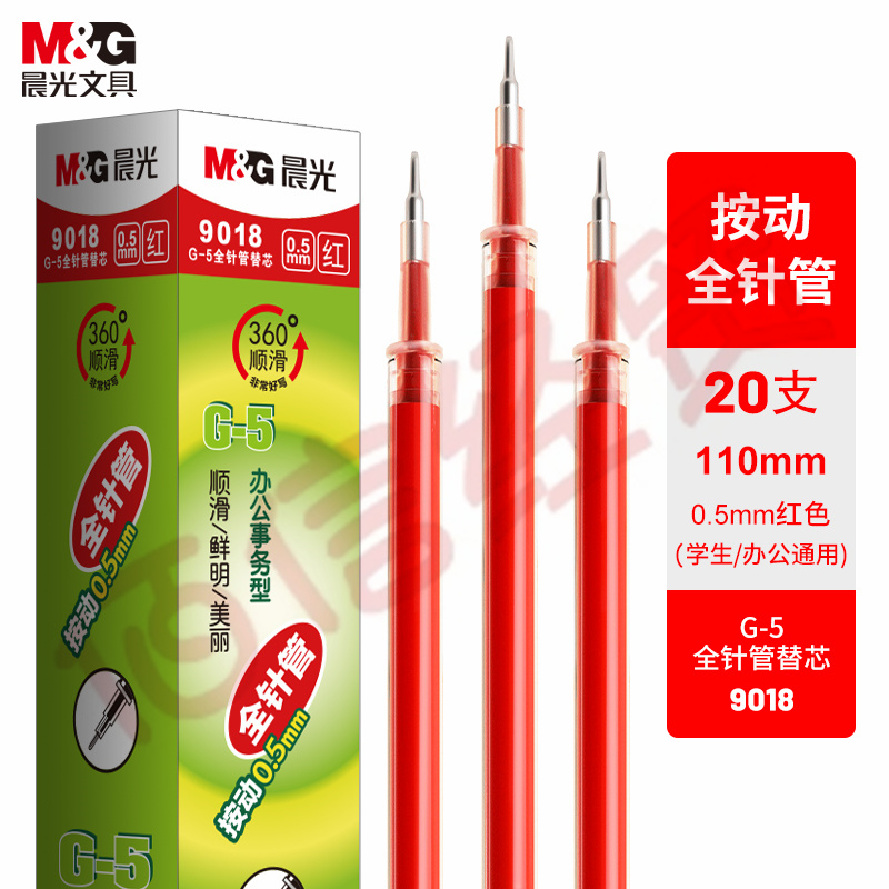 ■晨光0.5mm紅色中性筆替芯-- G-5全針管系列- 20支/盒9018C 自營
