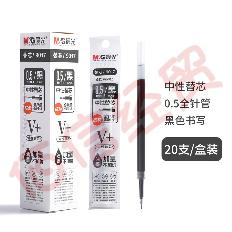 ■晨光優(yōu)品系列速干中性筆芯0.5按動(dòng)子彈頭替芯G-5升級(jí)版 9017替芯V+全針管黑色20支 自營