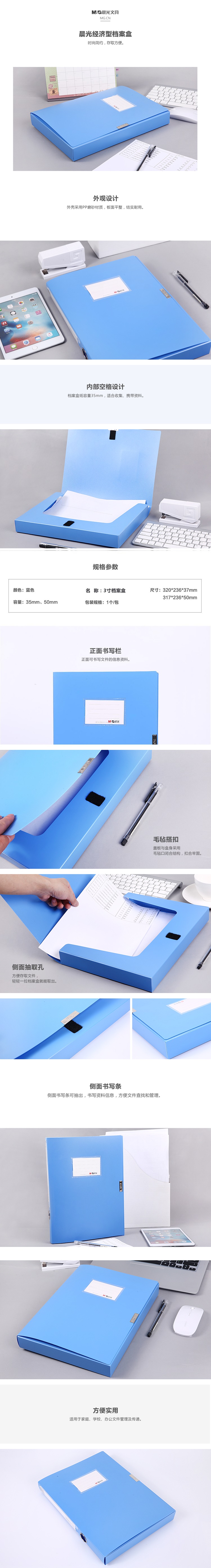 ■晨光經(jīng)濟型55mm檔案盒藍(lán)色ADM94814 自營