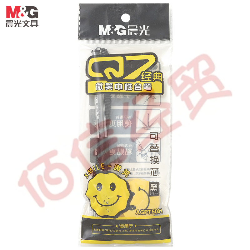 ■晨光0.5mm黑色可黏貼微笑中性筆 -單支裝/袋-AGPT5001A 自營