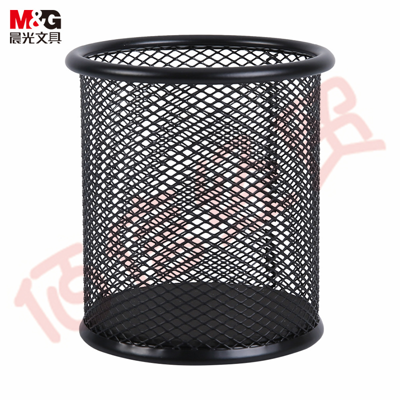 ■晨光(M&G)文具金屬圓形網(wǎng)格筆筒 辦公通用桌面收納盒 黑色單個裝ABT98404 自營