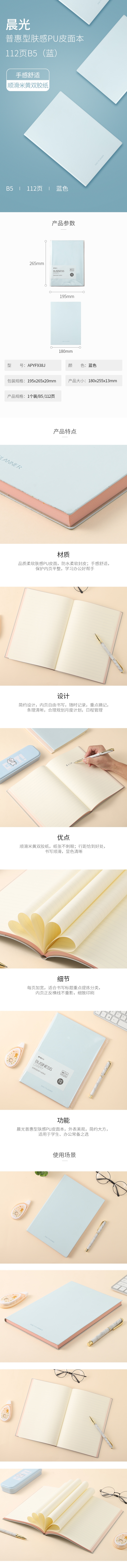 ¥18.40■晨光(M&G)文具B5/112張藍(lán)色辦公筆記本 會(huì)議記錄皮面本 普惠型膚感商務(wù)記事本子 單本裝APYF938J