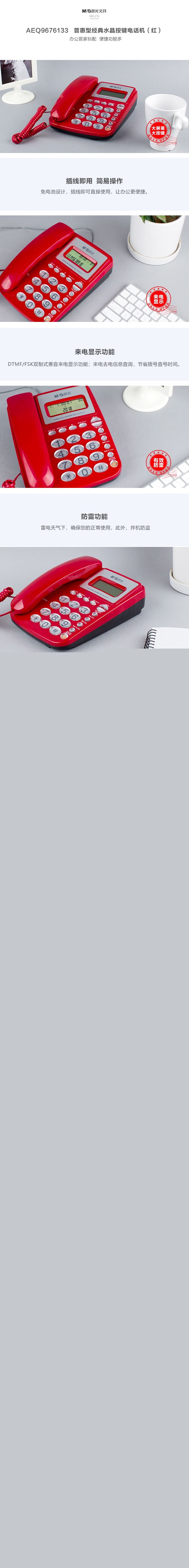 ■晨光普惠型經典水晶按鍵電話機AEQ96761紅