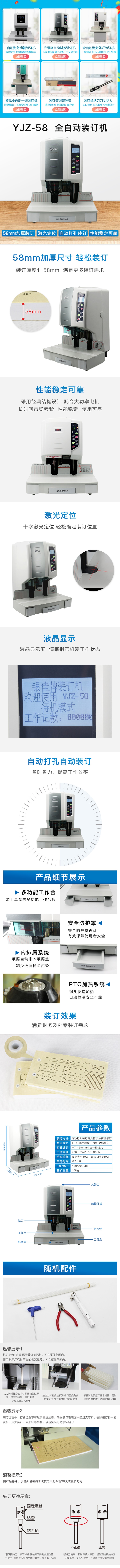 銀佳YJZ-58_財(cái)務(wù)憑證裝訂機(jī)_全自動打孔機(jī)_液晶顯示文件檔案熱熔鉚管裝訂機(jī) 自營