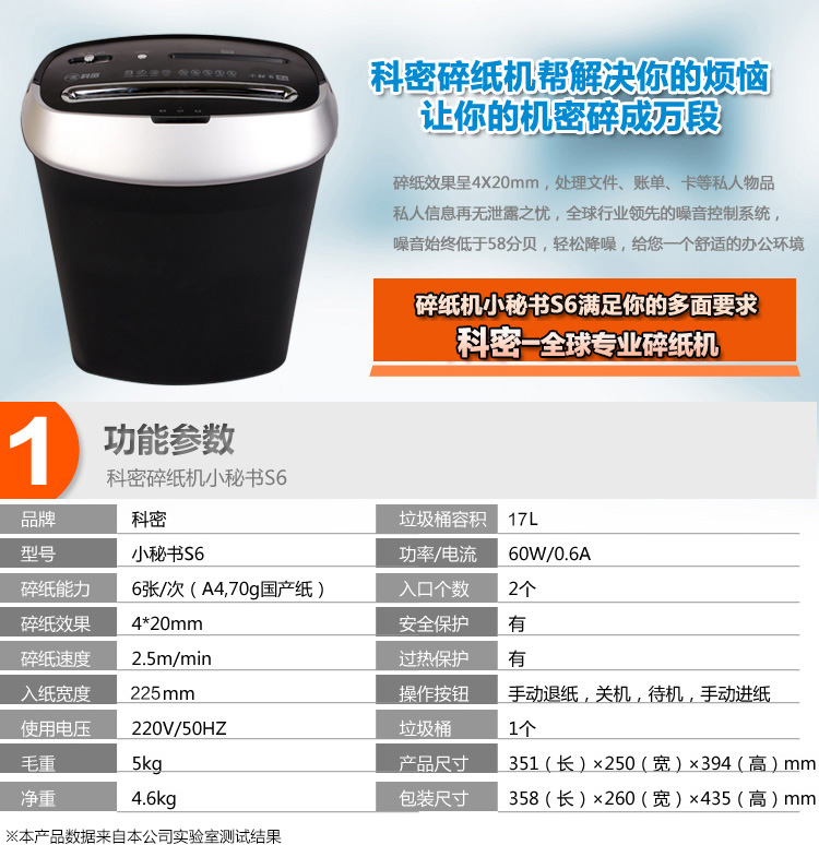 科密S6碎紙機(jī) 小型多功能便攜式桌面小秘書單位辦公家用文件粉碎機(jī)段狀 6張5分鐘17升碎紙光盤卡 科密S6標(biāo)配 自營