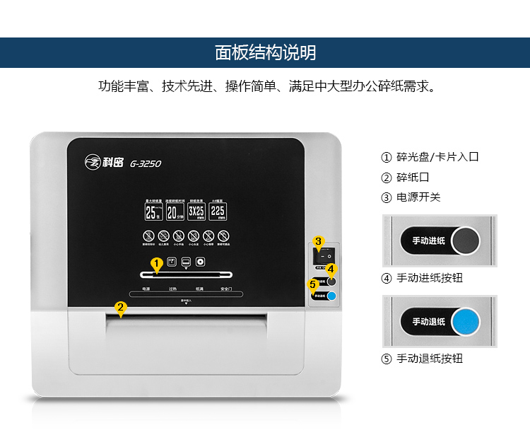 科密金盾G-3250碎紙機(jī) 大型大功率大容量多功能商務(wù)單位辦公用粉碎機(jī) 25張40升碎紙光盤信用卡 自營