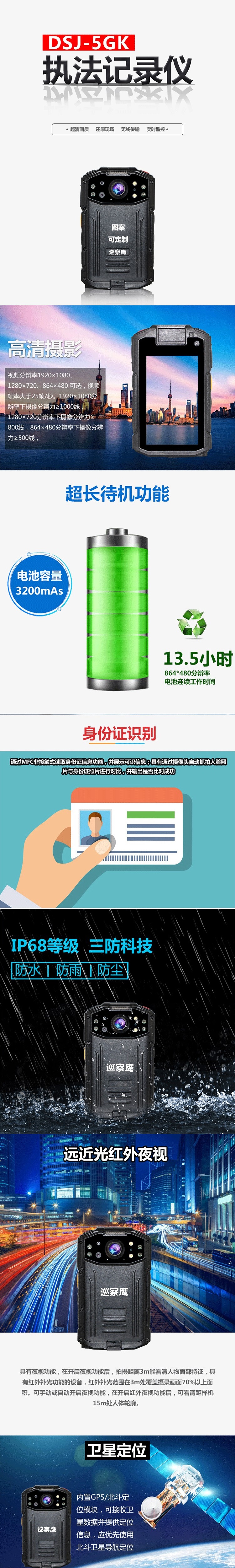 巡察鷹DSJ-5GK執(zhí)法記錄儀衛(wèi)星定位遠近光紅外夜視_64GB 自營