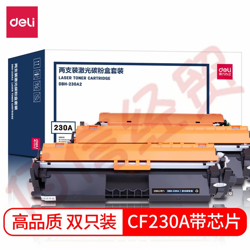 ■得力(deli)DBH-230A2 硒鼓 CF230A粉盒含芯片 2支裝(適用于 HP M203系列 M227fdn M227fdw M227sdn打印機(jī)) 自營