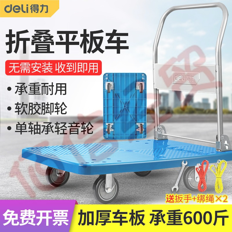 ■得力 擺攤車平板車-四輪搬運(yùn)車 (實(shí)惠款)承重600斤【單軸承輕音輪】DL6112 自營