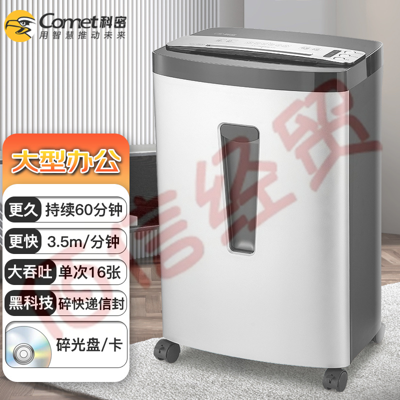 科密(comet)2021款辦公商用碎紙機(jī)(單次16張 持續(xù)60分鐘 31L 可碎卡、光盤、快遞紙盒、信封)銳金剛 自營