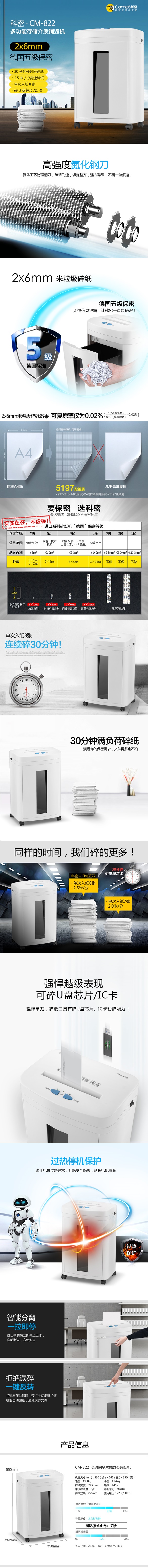 科密碎紙機CM-822 多功能存儲介質(zhì)銷毀機 可碎紙、IC卡、芯片 國保測認證保密等級二級 22L 自營