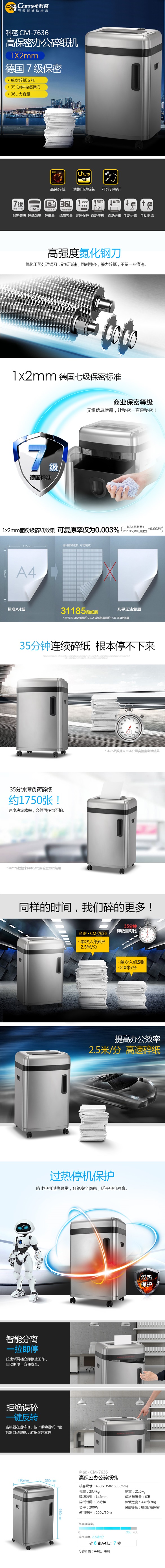 科密 Comet CM-7636 碎紙機(jī) 辦公商用碎紙機(jī) 單次6張 持續(xù)35分鐘 自營(yíng)