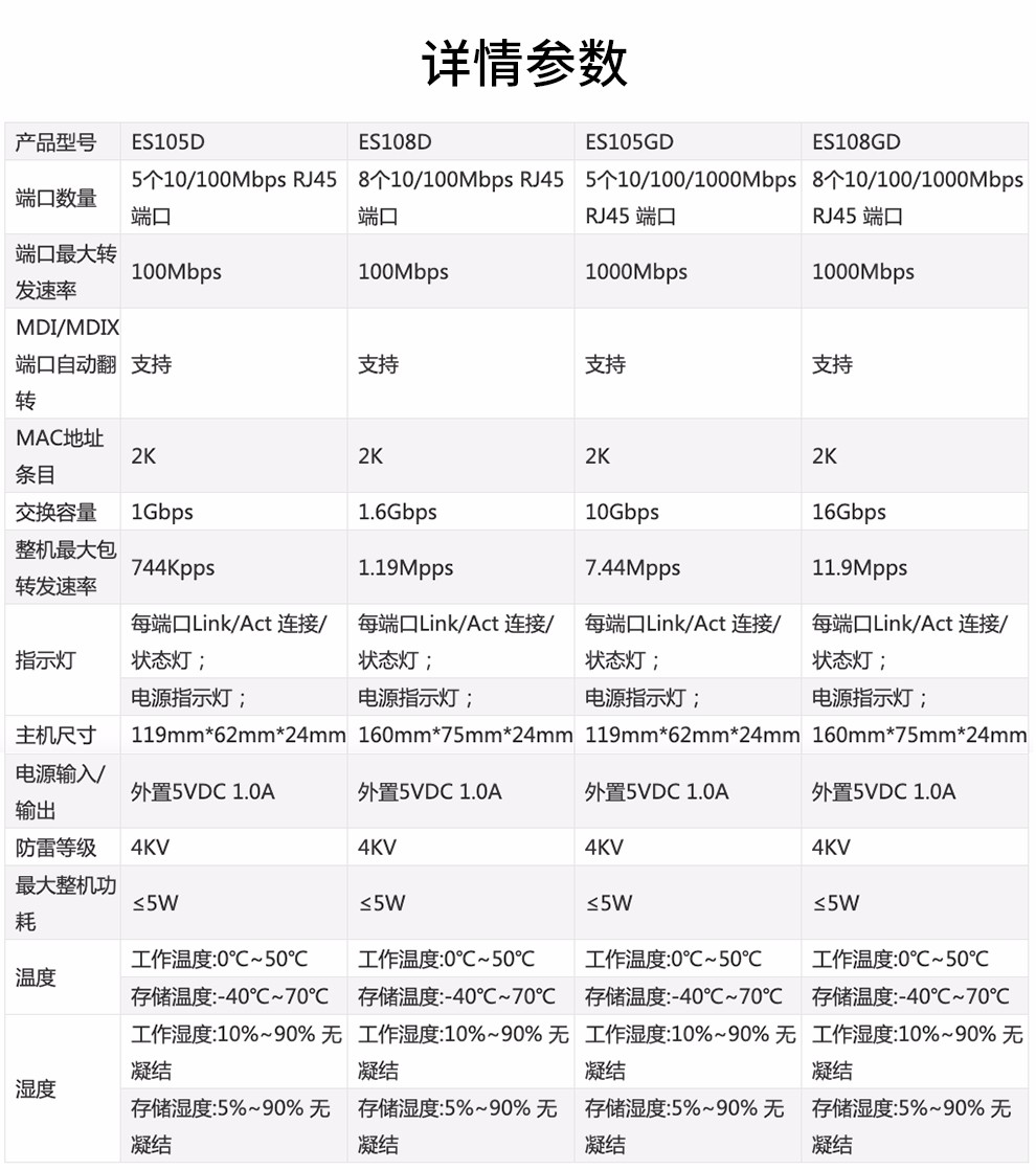 睿易銳捷 5口千兆交換機(jī)RG-ES105GD
