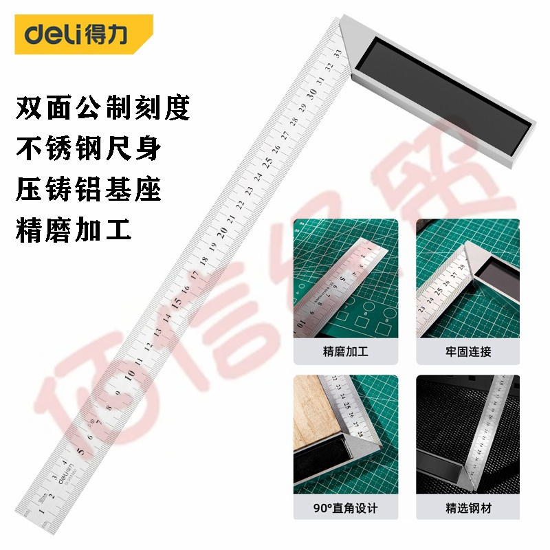 ■得力(deli)DL302350鋁合金鋼角尺三角尺 木工高精度不銹鋼90度寬直角尺木工測(cè)量L型尺子拐尺鋼尺 350mm鋁壓鑄鋼角尺 自營