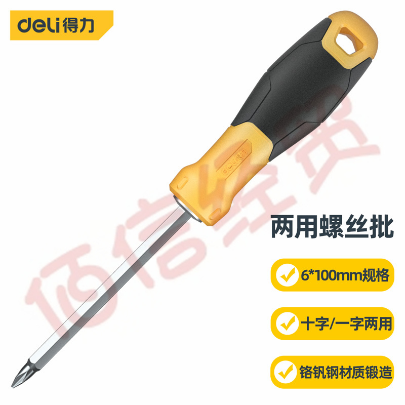 ■得力(deli) DL626001橡膠柄兩用螺絲批十字一字兩用雙頭起子6*100mm 自營