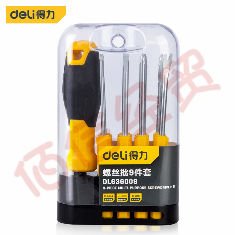 ■得力(deli) DL636009多用螺絲批鉻釩鋼螺絲刀起子改錐組套9件套 自營