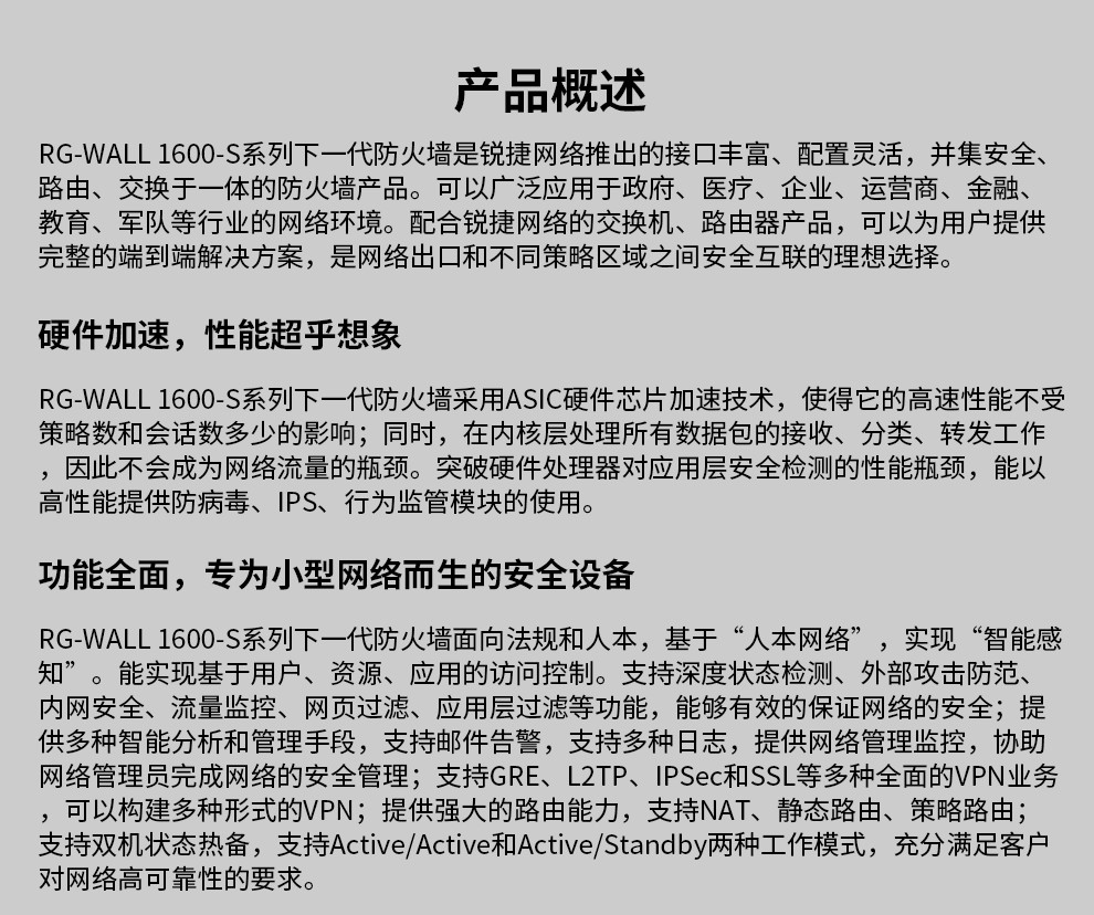 銳捷(Ruijie)RG-WALL 1600-S3200 下一代防火墻 主機(jī)
