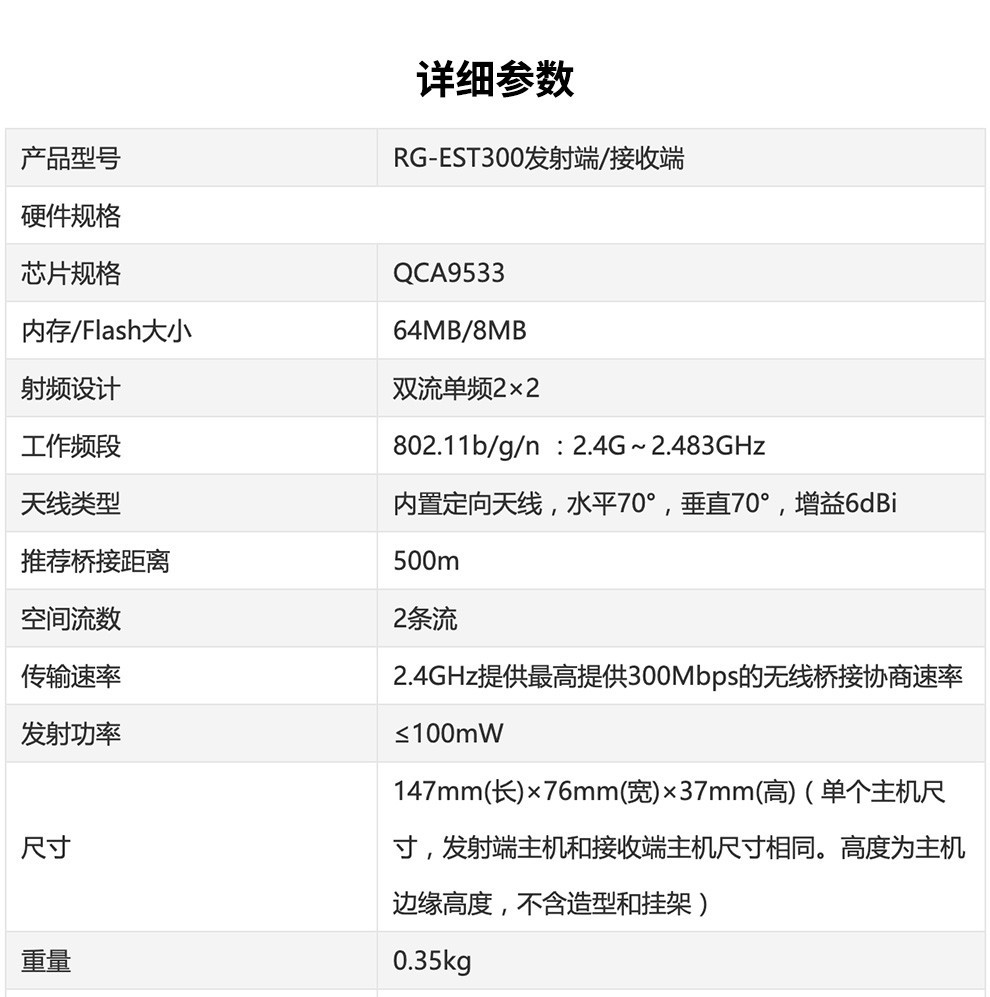 銳捷(Ruijie) 室外大功率智能監(jiān)控?zé)o線網(wǎng)橋 RG-EST310 5G單頻 1公里級(jí)(一對(duì))