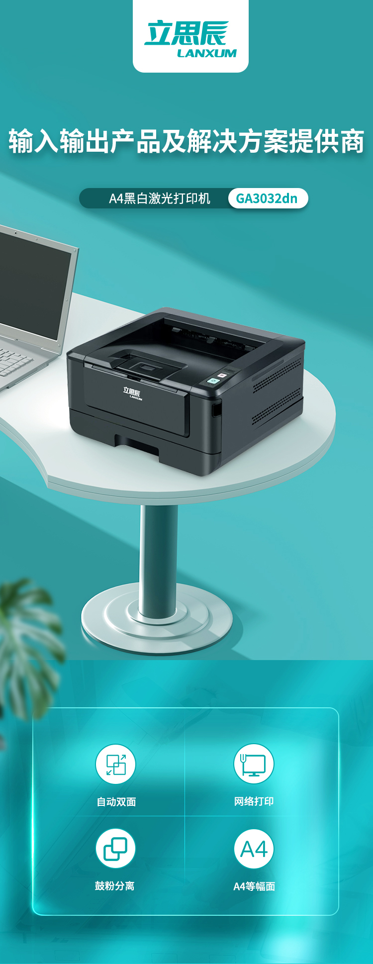 立思辰(LANXUM)A4激光黑白打印機(jī)GA3032dn 、A4幅面、黑白激光、網(wǎng)絡(luò)打印 自營(yíng)